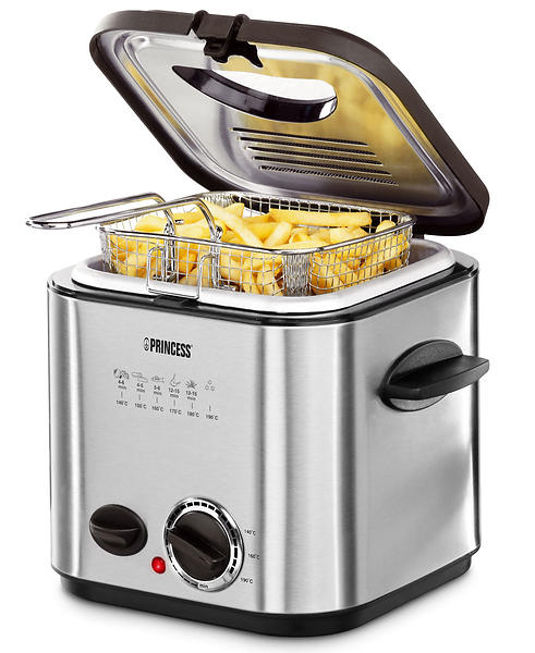 Et veldig godt og spennende alternatitiv! En liten, komplett Mini Frityrkoker & Fondue fra Princess. Den rommer 1,2 L og du kan både fritere og lage en god tradisjonell kjøttfondue i matolje. Den har et praktisk avtagbart lokk og integrert varmeelement. På frityrkokeren står det hvor lenge du skal fritere de ulike råvarene. Kommer med 6 fonduegafler.